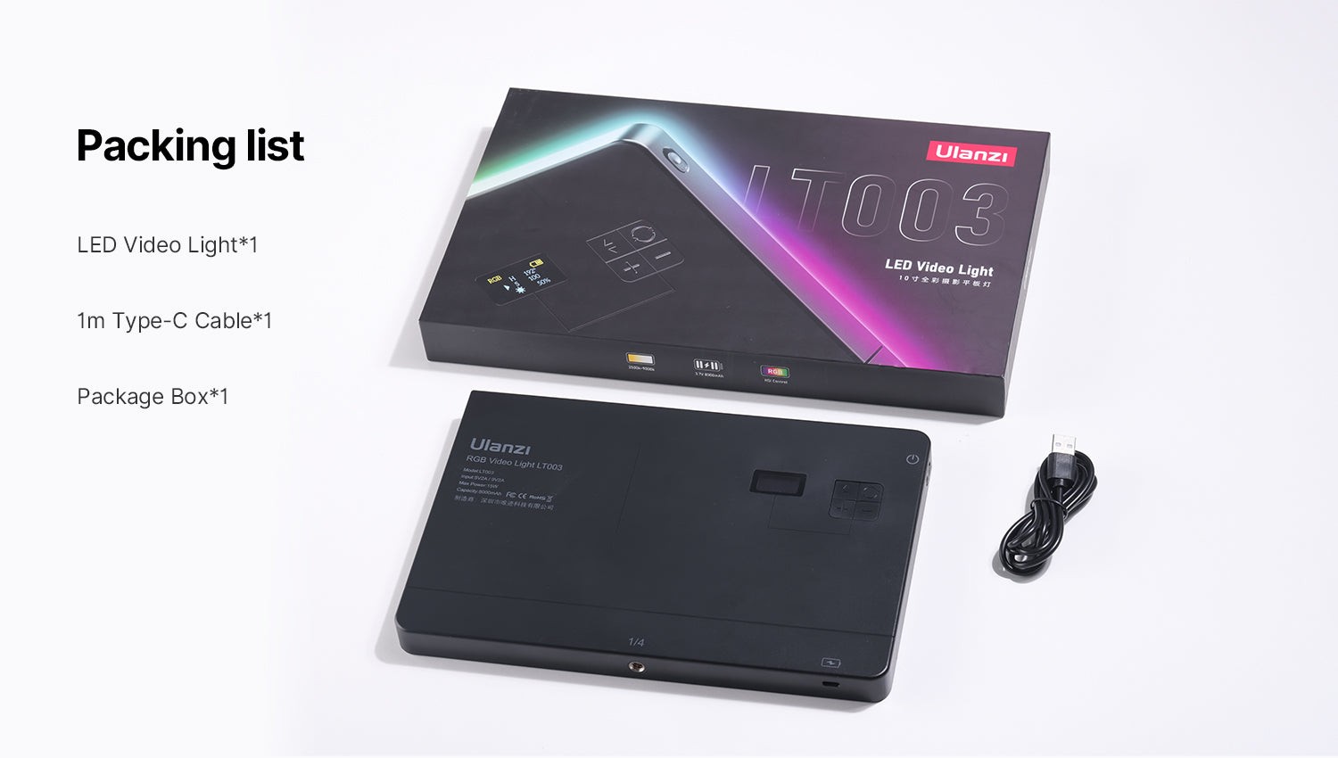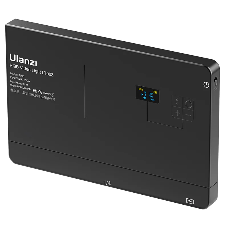 Ulanzi 10" RGB LED Videoleuchte 3099 je vsestranska, elegantna rešitev osvetlitve za ustvarjalce videov. Njena minimalistična, enodelna zasnova vsebuje močno vgrajeno litijevo baterijo s kapaciteto 8000 mAh, ki omogoča do 120 minut največje svetlosti in podporo za polnjenje med uporabo. Svetilka omogoča popolno prilagajanje barv v načinu HSI s popolno nastavitvijo barvnega polja, poleg tega pa ima tudi način CCT, ki omogoča barvne temperature od 2500 do 9000 K, da se prilagodi različnim snemalnim pogojem. S 266 LED-diodami z visoko barvno reprodukcijo in širokim kotom svetlobnega snopa 120° zagotavlja svetlo, visokokakovostno osvetlitev s CRI nad 95. Fotografi in videografi lahko izbirajo tudi med 20 dinamičnimi svetlobnimi učinki, kot so policijski avtomobil, stroboskop, sveča, ognjemet in drugi, ki povečajo ustvarjalnost in vzdušje v vsaki sceni. Ta svetloba je idealna izbira za tiste, ki iščejo prenosno, močno in prilagodljivo orodje za osvetljevanje videa.