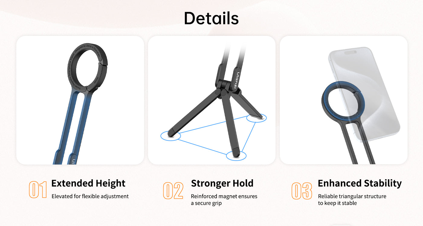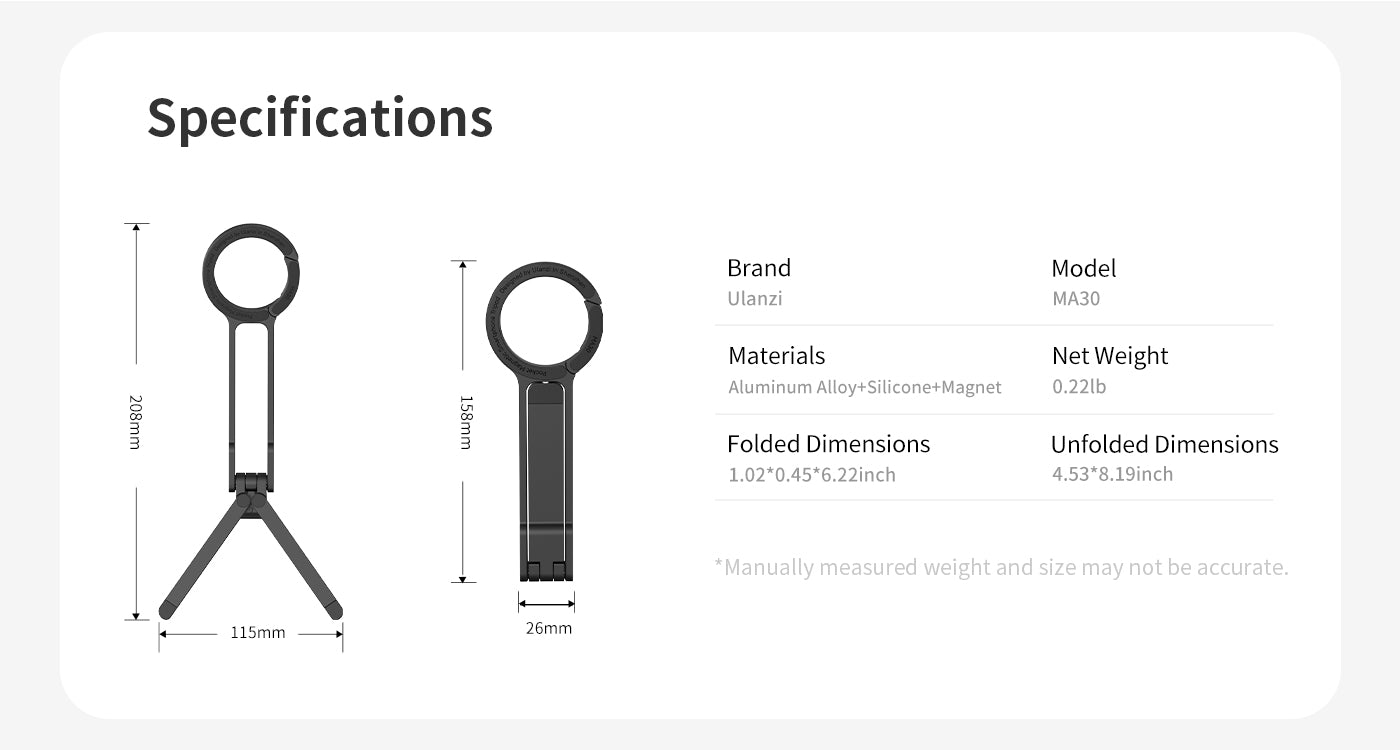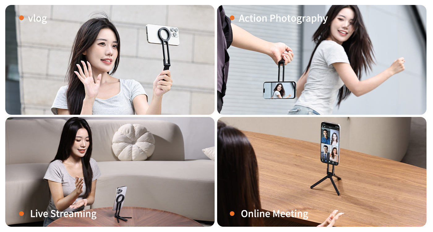 Ulanzi MA30 stojalo za telefon s karabinerjem – združljivo z MagSafe, izjemno prenosno in prijazno do ustvarjalcev. Pritrdite ga, zložite in snemajte. Ulanzi MA30 je stativ za telefon v obliki karabine, zasnovan za ustvarjalce, ki potrebujejo hitro namestitev, prilagodljive kote in kompaktno prenosljivost. Ne glede na to, ali snemate vlog na poti ali v ozkih prostorih, je ta MagSafe-združljiv nosilec pripravljen za pritrditev in snemanje.