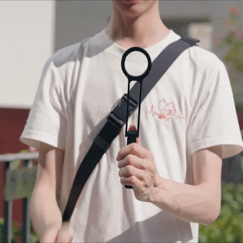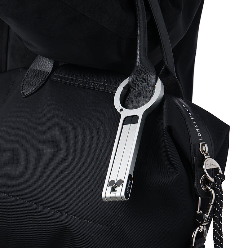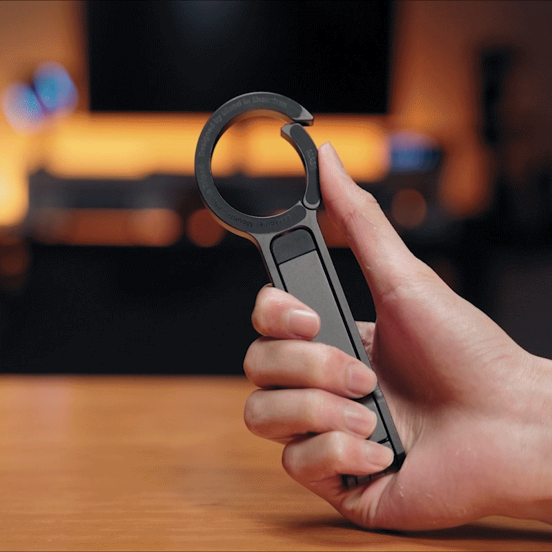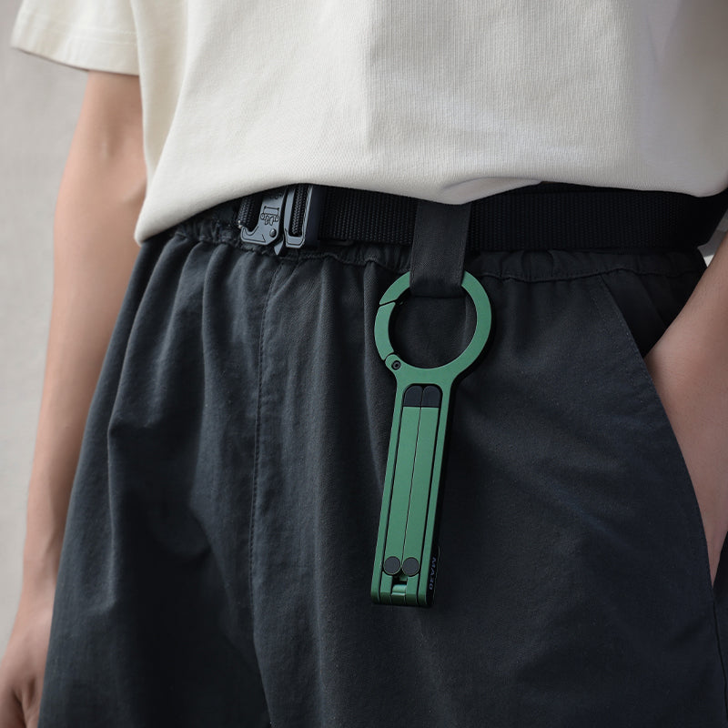 - Izdelek deluje samo kot stojalo za telefon, oblika v obliki karabinera pa omogoča priročno shranjevanje in prenosljivost. Ne uporabljajte ga za obešanje ali vlečenje drugih predmetov.