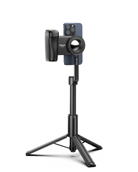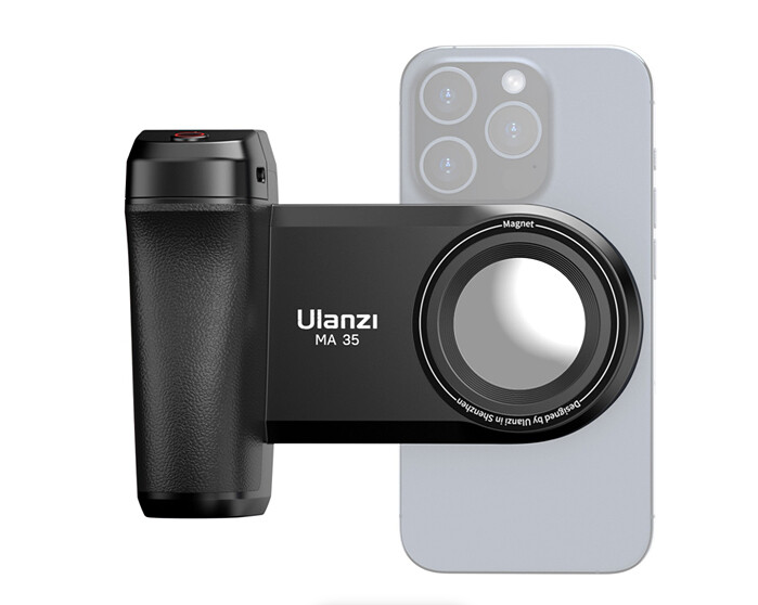 Ulanzi MA35 MagSafe Bluetooth Smartphone Camera Shutter and Grip vaš telefon spremeni v orodje za snemanje, podobno kameri. Opremljen je z varno MagSafe-pritrditvijo ali vgrajenim telefonskim objemkom, ergonomskim ročajem, snemljivim Bluetooth-sprožilcem in možnostmi za pritrditev dodatkov, zato je idealen za ustvarjalce vsebin, vlogerje in mobilne fotografe.