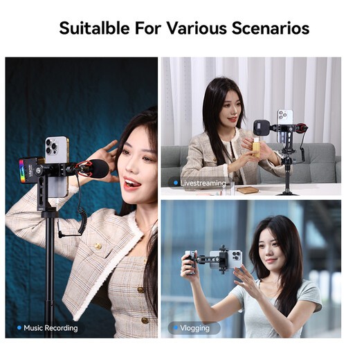 Z več pritrdilnimi točkami – vključno s hladnimi čevlji, 1/4"-20 navoji, 3/8"-16 navojem in ARRI lokacijsko luknjo – MA53 deluje kot kompaktno mobilno opremo za mikrofone, LED luči, monitorje ali brezžične sprejemnike. Ne glede na to, ali snemate vloge, družabne vsebine ali prenašate v živo, je MA53 močna in vsestranska rešitev za pritrditev pametnega telefona.