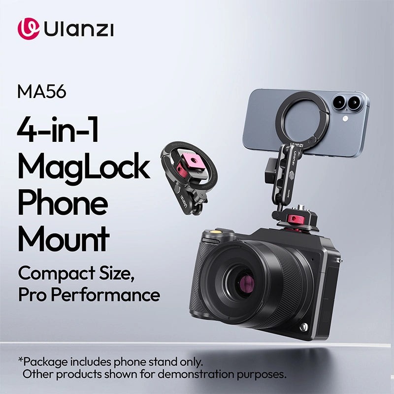 Ulanzi MA56 4-v-1 nosilec za telefon je vsestranska rešitev za ustvarjalce mobilnih vsebin, ki iščejo profesionalno stabilnost. Ta večnamenski dodatek služi kot varen nosilec za telefon in stativ, zaradi česar je idealen za vloganje, neposredno predvajanje in fotografiranje. Brez težav podpira tako pokončni kot ležeči način, kar zagotavlja popolno kadriranje…