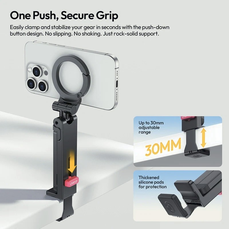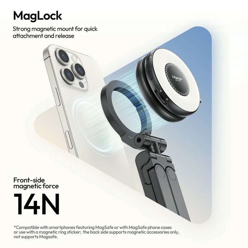 Stojalo za telefon Ulanzi MA88 MagLock je prenosno in večfunkcionalno stojalo za telefon, zasnovano za mobilne ustvarjalce, streamerje in vlogerje. Opremljeno je s patentiranim dvostranskim MagLock dizajnom, ki omogoča takojšnjo magnetno pritrditev na telefone ali ovitke, združljive z MagSafe. Močna magnetna sila zagotavlja varen oprijem brez zdrsa ali tresenja.