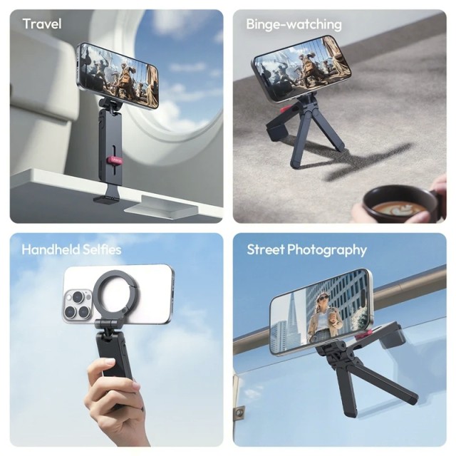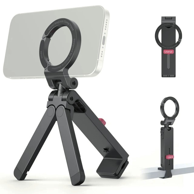 Ulanzi MA88 MagLock Phone Holder Tripod je vsestranski magnetni nosilec za telefon in mini stativ, ki združuje združljivost z MagSafe, 360° vrtenje in večkotne načine snemanja. Lahko ga uporabljate kot namizni stativ, ročni selfie palico ali ga pritrdite na površine za ustvarjalne posnetke v »Mantis Mode«.