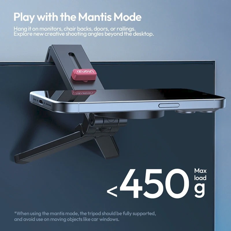 MA88 podpira tudi način Mantis, ki vam omogoča, da telefon obesite na monitorje, vrata, ograje ali naslone stolov, da zajamete edinstvene kote, ki presegajo standardne nastavitve stativa. Kompakten in lahek, saj tehta le 111 g, se zlahka prilega v žep ali se pritrdi na torbo za uporabo na poti.
