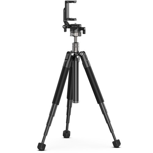 Vgrajena kroglica omogoča gladko gibanje s 360° panoramskim premikanjem, nadzorom vleka in neodvisno blokado premikanja, kar omogoča natančno kadriranje v vodoravni in navpični smeri. Vgrajeni adapter za pametni telefon in standardni 1/4"-20 pritrdilni vijak zagotavljata široko združljivost naprav. Odstranljiv in obojestranski sredinski steber deluje tudi kot palica za selfije, kar poveča doseg za snemanje vlogov iz roke ali ustvarjalne kote. Dodatne funkcije, kot so vodna tehtnica, več položajev nog in protizdrsne podloge, izboljšujejo stabilnost in enostavnost uporabe v različnih snemalnih okoljih.
