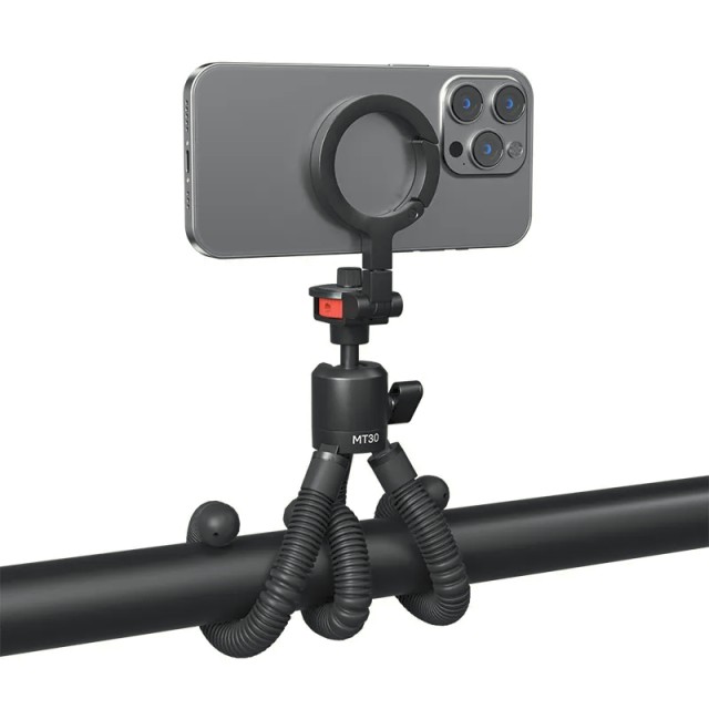 Ulanzi MT30 je vsestranski, magnetni in prilagodljiv stativ, zasnovan za pametne telefone, fotoaparate in akcijske kamere. Zaradi zložljive zasnove v obliki karabinera je primeren za potovanja, prilagodljive noge in 1/4-palčni navoj pa omogočajo ustvarjalne kote in stabilno snemanje.