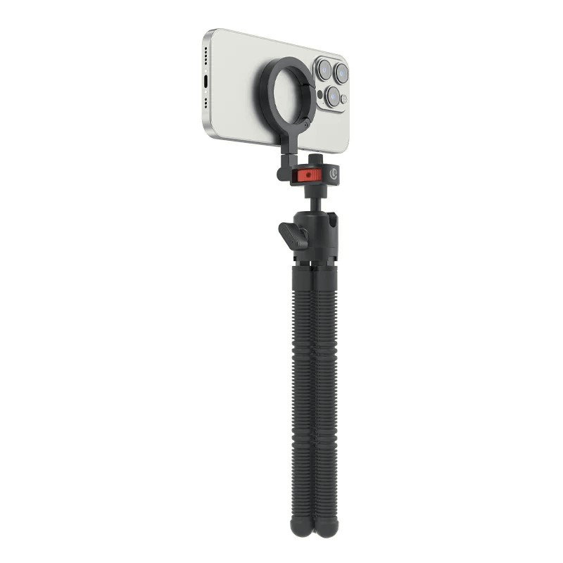 Magnetni fleksibilni stativ Ulanzi MT30 je lahek, za potovanja primeren stativ za ustvarjalce vsebin, ki so veliko na poti. Njegova edinstvena zasnova s karabinskim klipom omogoča enostavno pritrditev na torbe, pasove ali drugo opremo za prenašanje brez uporabe rok. MT30 ima močno magnetno silo na sprednji strani (>14N), združljivo s telefoni MagSafe ali magnetnimi obročnimi nalepkami, kar omogoča varno pritrditev brez odstranjevanja ovitka telefona. Dvostranski magneti omogočajo fleksibilnost pri pritrjevanju dodatkov. Fleksibilne noge s trojnim sklepom se lahko ovijejo okoli predmetov ali prilagodijo za edinstvene kote, kar ga naredi idealnega za snemanje na mizi, posnetke iz prve osebe, livestreaming in fotografiranje na prostem. Vrtljivi nosilec za telefon z U-režo in kroglasto glavo omogoča enostavno preklapljanje med pokončno in ležečo usmeritvijo. Z največjo nosilnostjo 1,3 kg varno podpira telefone, kamere in akcijske kamere.