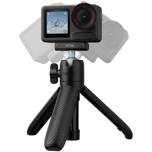 Stojalo Ulanzi MT66 ClipMate je kompaktna rešitev 2 v 1, ki deluje kot mini stojalo in palica za selfije za kamere DJI Osmo Action. To lahko stojalo z vgrajeno kroglasto glavo in hitrim sprostilnim mehanizmom vgrajenim nosilcem omogoča prilagodljive kote snemanja in prenosno stabilnost za vlogerje in ljubitelje akcijskih kamer.