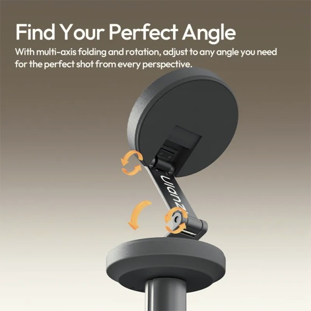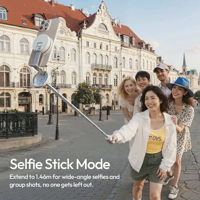 Z avtomatskim stativom za telefon Ulanzi MT85 v črni barvi lahko brez težav zajamete vsak kot. Njegova inovativna zasnova s štirimi nogami in protizdrsnimi podložkami zagotavlja stabilnost na kateri koli površini, medtem ko vam dvostranski nosilec MagSafe omogoča varno pritrditev telefona ali dodatkov. Stativ se z 7-delnim sistemom zasuknega zapiranja podaljša do 1,5 m (59,1"), kar ga naredi idealnega za posnetke celotnega telesa, skupinske fotografije in poglede od zgoraj. Večosni vrtljivi nosilec za telefon omogoča fotografiranje v pokončnem, ležečem in kreativnem kotu. Skriti Bluetooth daljinski upravljalnik omogoča brezžično upravljanje z razdalje do 10 m, kar vam omogoča prostoročno upravljanje tako za fotografije kot za videoposnetke. MT85 je lahek, tehta le 385 g, zato je idealen za ustvarjalce, ki so veliko na poti.