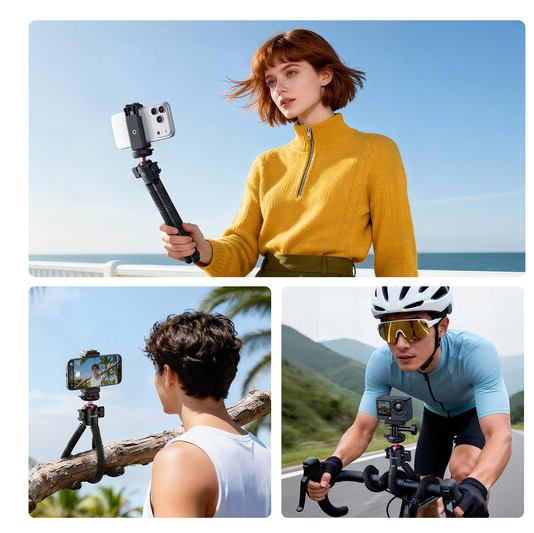 Njegove tri prilagodljive, vodotesne in korozijsko odporne noge se lahko ovijejo okoli drogov, ograj, vej ali neravnih površin, kar uporabnikom omogoča snemanje iz edinstvenih in ustvarjalnih zornih kotov, kjer standardnih stojal ni mogoče uporabiti. Zaradi tega je še posebej uporaben za snemanje na prostem, potovalne vsebine in dinamične vlogerske postavitve.