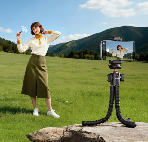 Stativ Ulanzi MT91 Cka Quick Release Octopus je prilagodljiv in kompakten stativ, namenjen pametnim telefonom in majhnim fotoaparatom. Zahvaljujoč upogljivim nogam, 360° nastavljivi kroglični glavi in daljinskemu upravljalniku prek Bluetootha ustvarjalcem omogoča snemanje stabilnih posnetkov iz praktično vseh zornih kotov, vključno z nizkimi, nadglavnimi in obkrožnimi položaji.