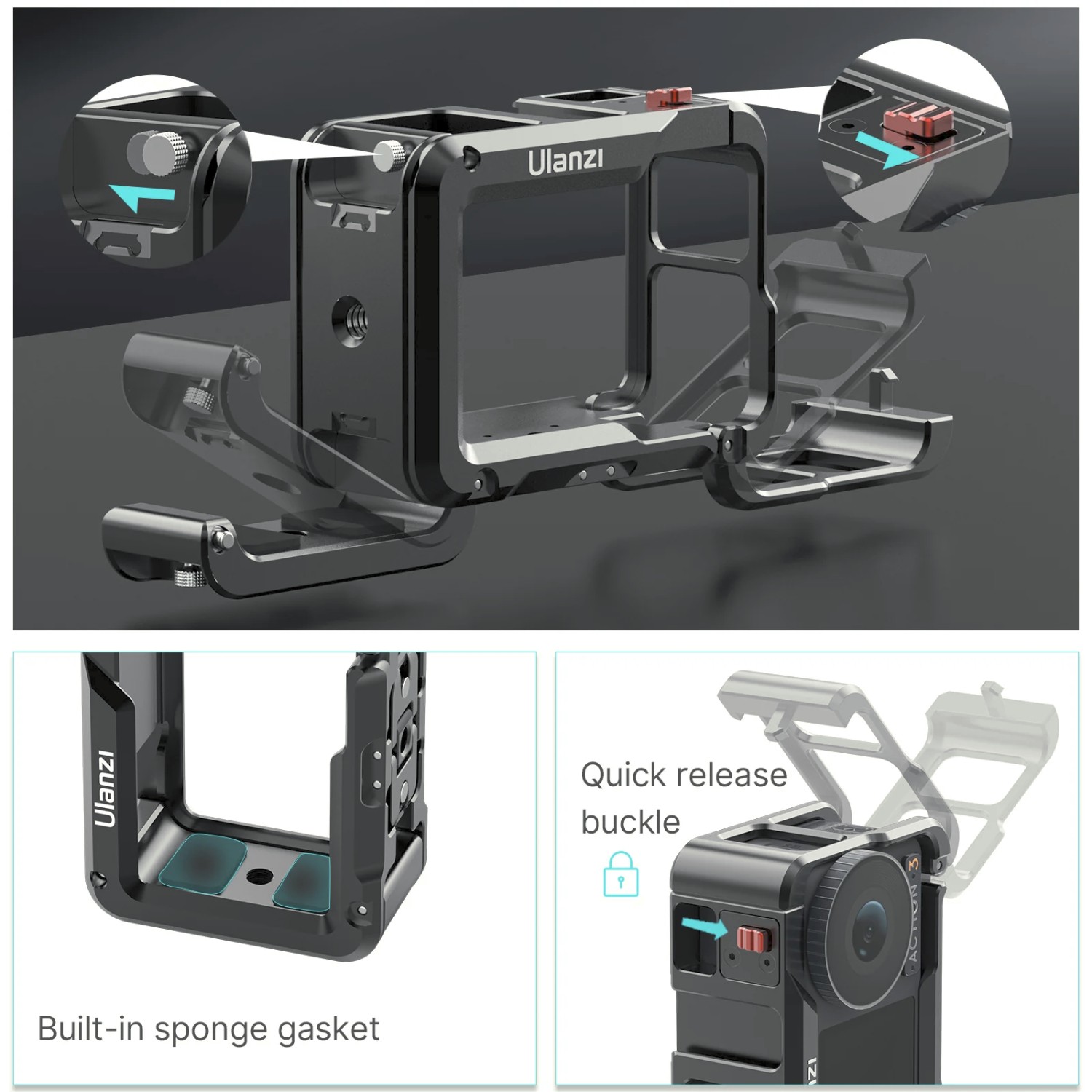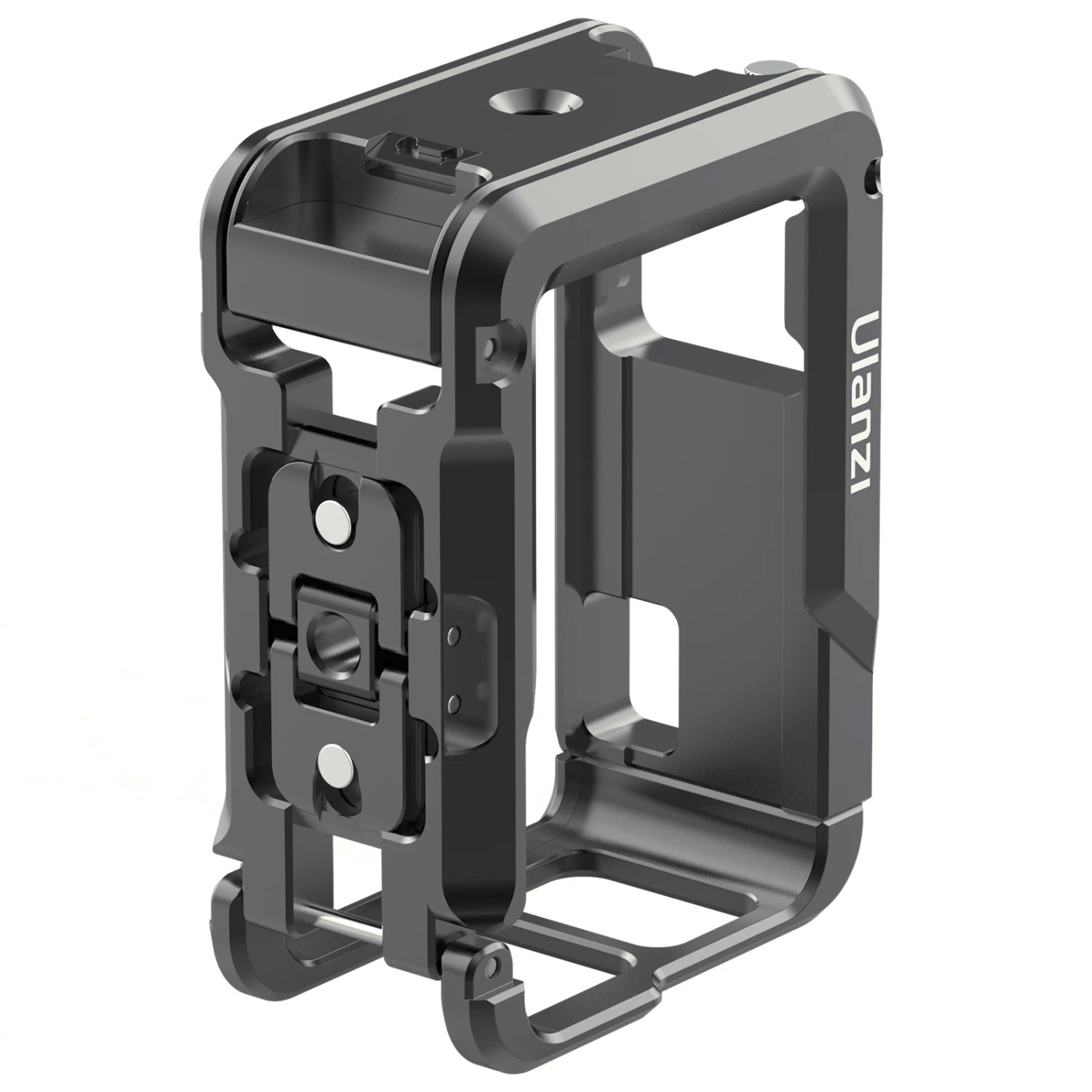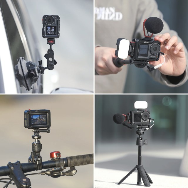 Ulanzi OA-14 C-Action Metal Camera Cage je robustna in vsestranska kletka, zasnovana za DJI Osmo Action 3 in Action 4. Omogoča več možnosti pritrditve mikrofonov, luči in drugih dodatkov, hkrati pa omogoča enostavno preklapljanje med vodoravnim in navpičnim načinom snemanja.