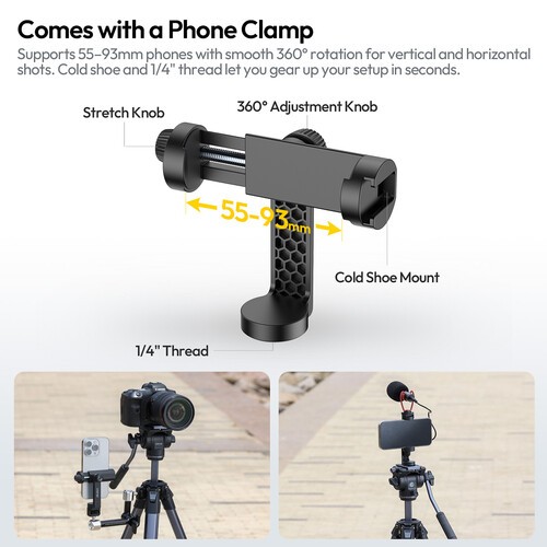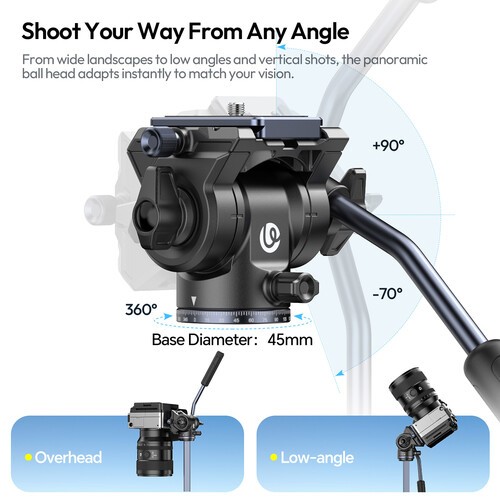 Ombra Video II XIANG aluminijasti stativ z fluidno glavo proizvajalca Ulanzi je lahek stativ za snemanje videa na poti. S fluidno glavo z nosilnostjo 3 kg, 360° zasukom in +90/-75° nagibom je enostavno namestiti kamero na priloženo ploščo za hitro sprostitev tipa Arca in nastaviti popoln kader. Petdelne noge imajo nosilnost 10 kg, s popolnoma iztegnjenim srednjim stebrom pa kamero dvignejo na višino 157 cm. Za stabilnost ima stativ koničaste noge in protiutež na srednjem stebru, ki jo je mogoče obrniti tudi za nizke kote. Stativ se zloži na majhnih 49 cm in ima 1/4"-20 ARRI luknjo za pritrditev ter sponko za telefon za dodatno pritrditev dodatkov.