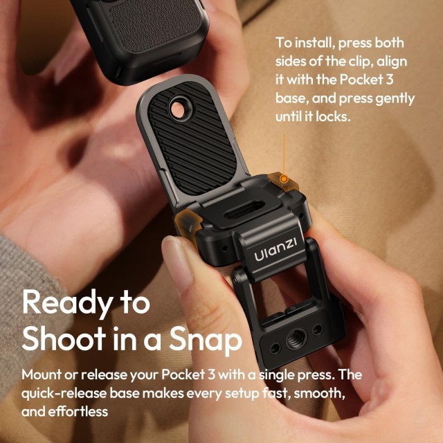 Magnetna podlaga Ulanzi PK16 Quick-Release omogoča hitro in vsestransko namestitev za vaš DJI Pocket 3 ali Feiyu Pocket 3, kar omogoča hitro pritrditev na stative, kovinske površine ali druge nosilce. Njena magnetna zasnova zagotavlja varno namestitev in hkrati ponuja fleksibilnost za ustvarjalne snemalne kote.