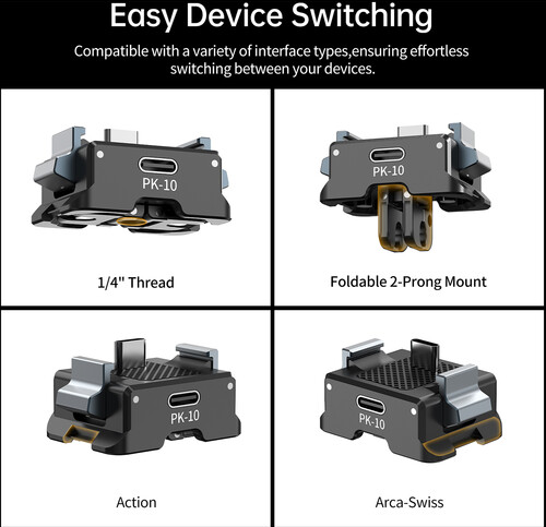 Ulanzi PK-10 USB-C podstavek za DJI Osmo Pocket 3 – 2-konični nosilec iz aluminijeve zlitine s prehodnim polnilnim priključkom, magnetnim hitrim stikalom in izjemno lahkim težo 34 g za nemoteno snemanje na poti.