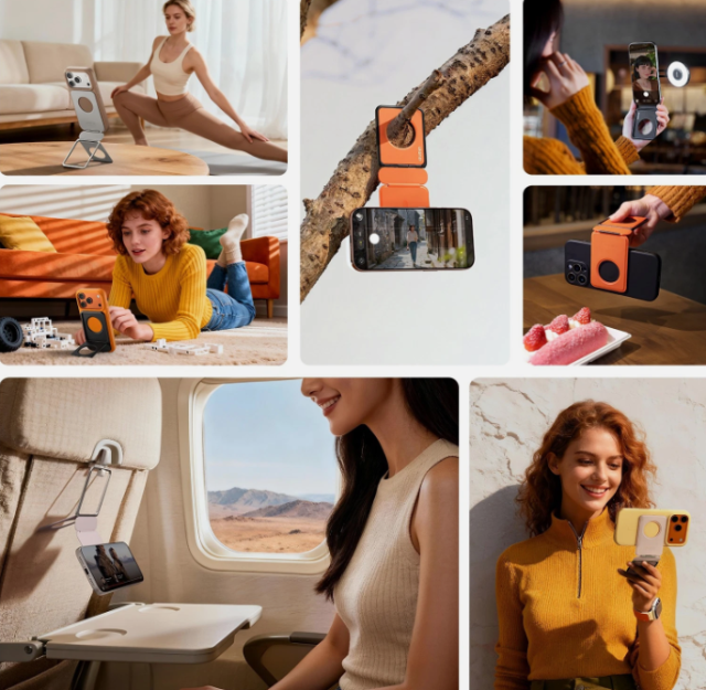 Opremljen z zanesljivim magnetnim sistemom MagSnap se PS01 varno pritrdi na iPhone ali Android pametne telefone, združljive z MagSafe, s pomočjo magnetnega obroča ali ovitka. To zagotavlja stabilen oprijem za opravila, kot so videoklici, pretakanje, brskanje ali snemanje vsebin.