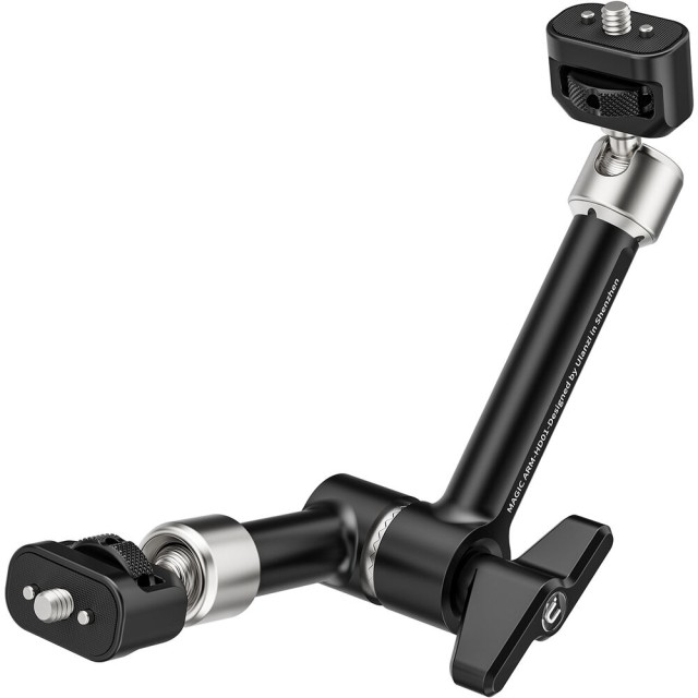 10-palčni artikulirani magic arm ima dvojne 360° nastavljive kroglice z vijaki 1/4"-20 na vsakem koncu, kar omogoča popolno svobodo pri nagibanju, vrtenju in nastavljanju pritrjenih naprav. Z nosilnostjo do 6,6 lb lahko varno drži luči, monitorje, mikrofone ali kamere. Neodvisni zaporni gumbi in zaporni zatiči zagotavljajo, da vaša oprema ostane varna med uporabo, medtem ko konstrukcija iz aluminijeve zlitine in nerjavečega jekla zagotavlja trajnost brez prekomerne teže.