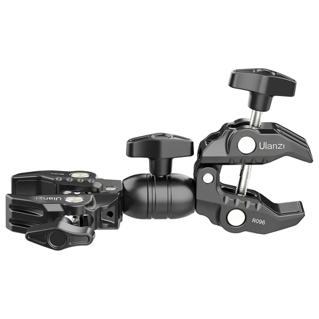 Varno pritrditev kjerkoli Pritrdite opremo z zaupanjem z uporabo Ulanzi R096. Opremljen je z dvojnimi 360° vrtljivimi sponkami in robustno kovinsko konstrukcijo, ki se s protizdrsnimi silikonskimi blazinicami oprijema površin od 12 do 58 mm. Idealen za stative, svetlobne stojala, ograje ali kolesa. Podpira do 1,5 kg – kompakten, vremenu odporen in narejen za ustvarjalce, ki so vedno v gibanju.