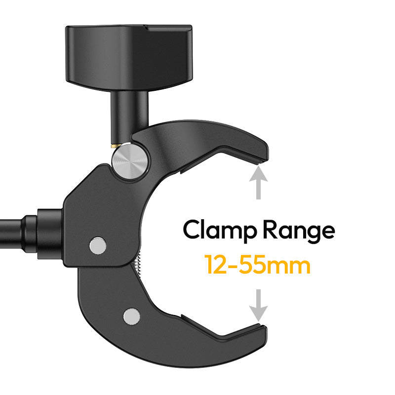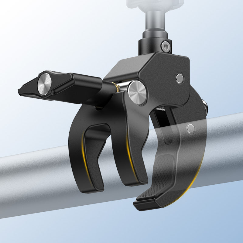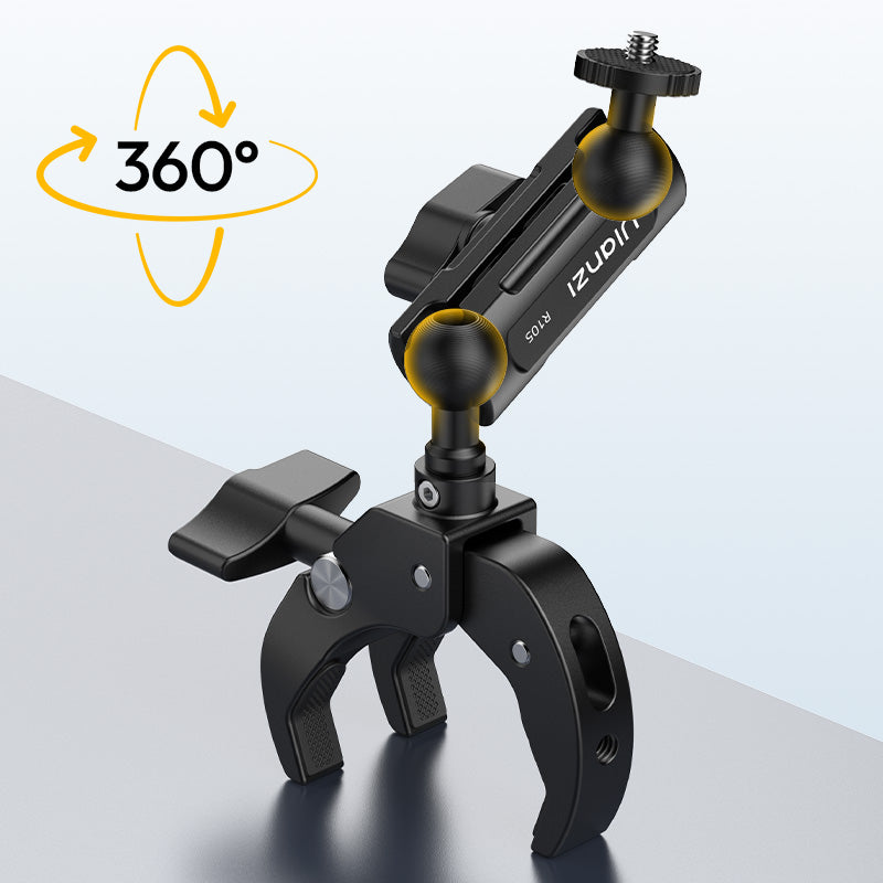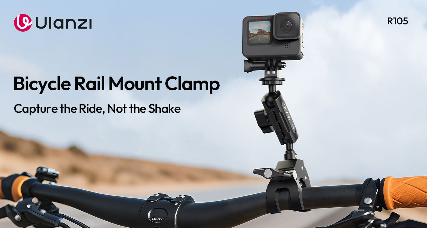 Ulanzi R105 Bicycle Rail Mount Clamp C057 je robusten, kovinski nosilec za kamero, zasnovan za kolesarje in ustvarjalce na prostem. Opremljen je s trojnim krempljem in protizdrsnimi gumijastimi blazinicami, ki zagotavljajo neprimerljivo stabilnost na krmilu, tirnicah ali ravnih površinah. Gumb, ki je prijazen do rokavic, se enostavno nastavi od 12 do 55 mm, medtem ko dvojna kroglica z 360° vrtljivostjo omogoča polno vrtenje in nagib za dinamične snemalne kote. Združljiv je z napravami z 1/4" vijakom in akcijskimi kamerami tipa GoPro ter podpira do 1 kg – idealnoza kompaktne kamere, luči ali monitorje.