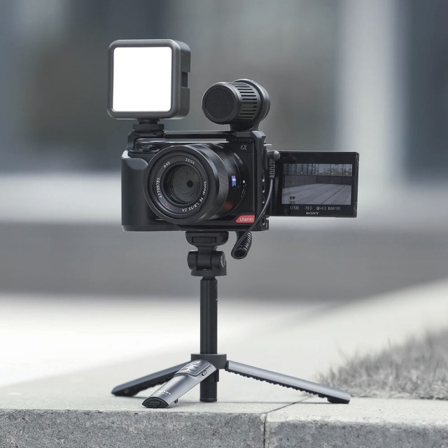 S stojalom Ulanzi RMT-01 Vlog Wireless Remote Control Tripod boste svoje vloganje, neposredno predvajanje in mobilno fotografijo povzdignili na višjo raven. Ta kompakten, lahek pripomoček deluje tudi kot palica za selfije in namizni stativ, opremljen je s 4-delno palico iz eloksirane aluminijeve zlitine, ki se razteza do 16,5 palca, in 180° nagibno glavo za prilagodljive kote. Ročaj se raztegne v noge stativa s 120° razponom, kar zagotavlja stabilno platformo za pametne telefone, akcijske kamere ali majhne digitalne kamere do 3,3 funta.