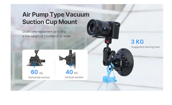 Ulanzi 3090 SC-02 Heavy-Duty Suction Cup Mount je namenjen ustvarjalcem, ki potrebujejo trdno pritrditev na ravnih površinah, kot so avtomobilska stekla, pokrovi, kovinske plošče ali steklo. SC-02 je zasnovan za akcijske kamere in lahke kamere ter uporablja industrijsko močno 4,5-palčno prisesno skodelico s sistemom vakuumske črpalke za ustvarjanje izjemno varne povezave.