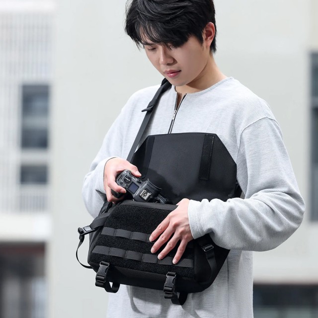 Ostanite agilni in organizirani z torbo Ulanzi B010. Zasnovana je za fotografe in videografe, ki so veliko na poti, ponuja prostornino 9 litrov s prilagodljivimi predelki, vodoodporno zunanjost in mehko žametno notranjost za zaščito vaše opreme. Vanjo se prilega brezzrcalni fotoaparat, tablični računalnik, stativ in dodatki. Lahka, elegantna in zasnovana za vsakodnevno fotografiranje.