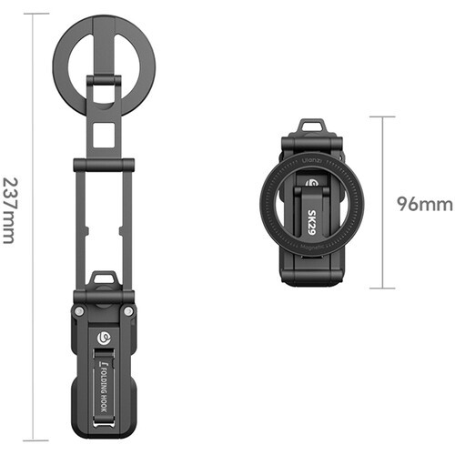 Zložljivi stojalo za telefon Ulanzi SK29 (magnetno) je kompakten, vsestranski nosilec za pametne telefone z magnetno sponko MagSafe. Zložljiv, prenosljiv in opremljen z 1/4"-20 navojno podlago, je idealen za vloganje, pretakanje ali gledanje brez uporabe rok kjerkoli.