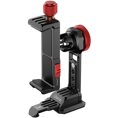 Ulanzi ST-14 IronMan III kovinski nosilec za pametni telefon je robusten, kovinski nosilec za stativ z Arca-tipom podstavka, 1/4"-20 navojem, 360° kroglasto glavo in hladnim nosilcem za bliskavico – idealen za prilagodljivo fotografiranje in snemanje videov s pametnim telefonom, ki je pripravljen za dodatno opremo.
