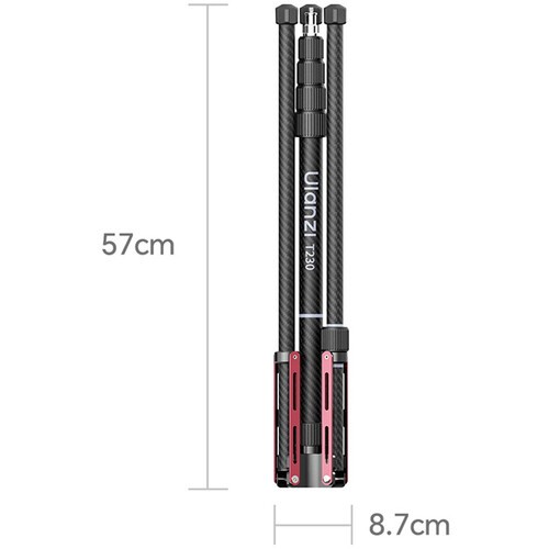 Stojalo za svetlobo Ulanzi T230 ponuja fleksibilnost in stabilnost tako profesionalnim kot amaterskim ustvarjalcem. Njegove neodvisne obračljive noge in protizdrsne silikonske nogice omogočajo stabilnost na neravnih površinah, medtem ko se teleskopski odstranljivi srednji steber prilagaja od 22,8" do 90,5" (57–230 cm), da ustreza različnim kotom osvetlitve. Stojalo T230 je izdelano iz aluminija, ogljikovih vlaken, plastike in jekla, tehta le 0,95 kg, vendar je dovolj močno, da podpira luči, kamere ali dodatke, ki tehtajo do 5 kg. Stojalo ima 1/4"-20 pritrdilni vijak in standardni nosilec za svetlobno stojalo, kar zagotavlja široko združljivost. Zložljiv do 57 cm in opremljen s torbo za shranjevanje, je enostaven za prevoz in idealen za snemanje na poti ali v studiu.