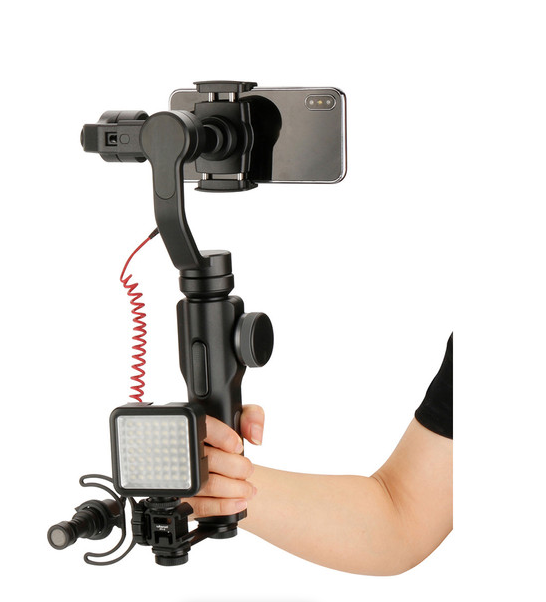Nosilec vključuje 4,1-palčno podaljševalno roko z vijaki 1/4"-20 in nazobčanim kolescem za varno zategovanje. Namesti se lahko prek vmesnika za hladno stopalo ali standardnega navoja 1/4"-20, kar zagotavlja široko združljivost z gimbali in kamerami, kot so serije DJI Osmo Mobile, Zhiyun Smooth in modeli Feiyu Tech Vimble.