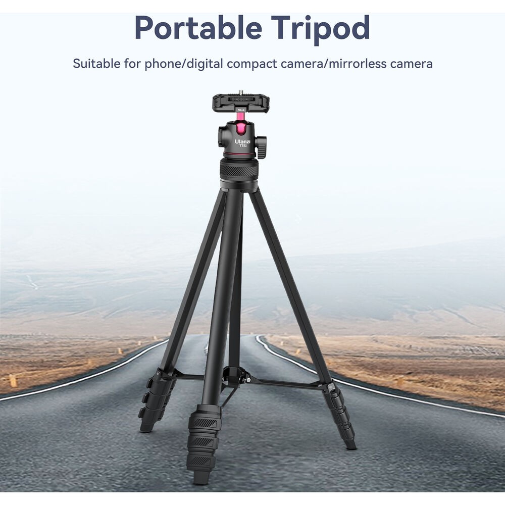 Prenosni stativ Ulanzi TT51 iz aluminijeve zlitine je zasnovan za ustvarjalce, ki cenijo preprostost, prenosljivost in vsestranskost. Teža le 0,59 kg in zložljivost do 18,5 palca omogočata enostavno shranjevanje v nahrbtnikih ali potovalnih kovčkih, kar ga naredi odličnega spremljevalca za potovanja, vloganje in vsakodnevno fotografiranje. Kljub kompaktni velikosti TT51 podpira obremenitve do 2,9 kg, kar ga naredi primernega za pametne telefone, akcijske kamere in lahke brezogledne kamere.