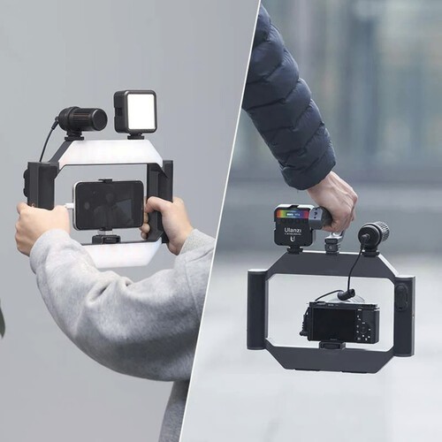 Ulanzi U-Rig Smartphone Video Rig z lučjo je rešitev z dvema ročajema in dvobarvno LED osvetlitvijo, zasnovana za izboljšanje stabilizacije in osvetlitve za ustvarjalce mobilnih vsebin. Z nastavljivo barvno temperaturo od 2500 do 9000 K, vgrajeno polnilno baterijo in brezžičnim daljinskim upravljalnikom je idealna za vloganje, intervjuje, neposredno predvajanje in produkcijo videov na poti.