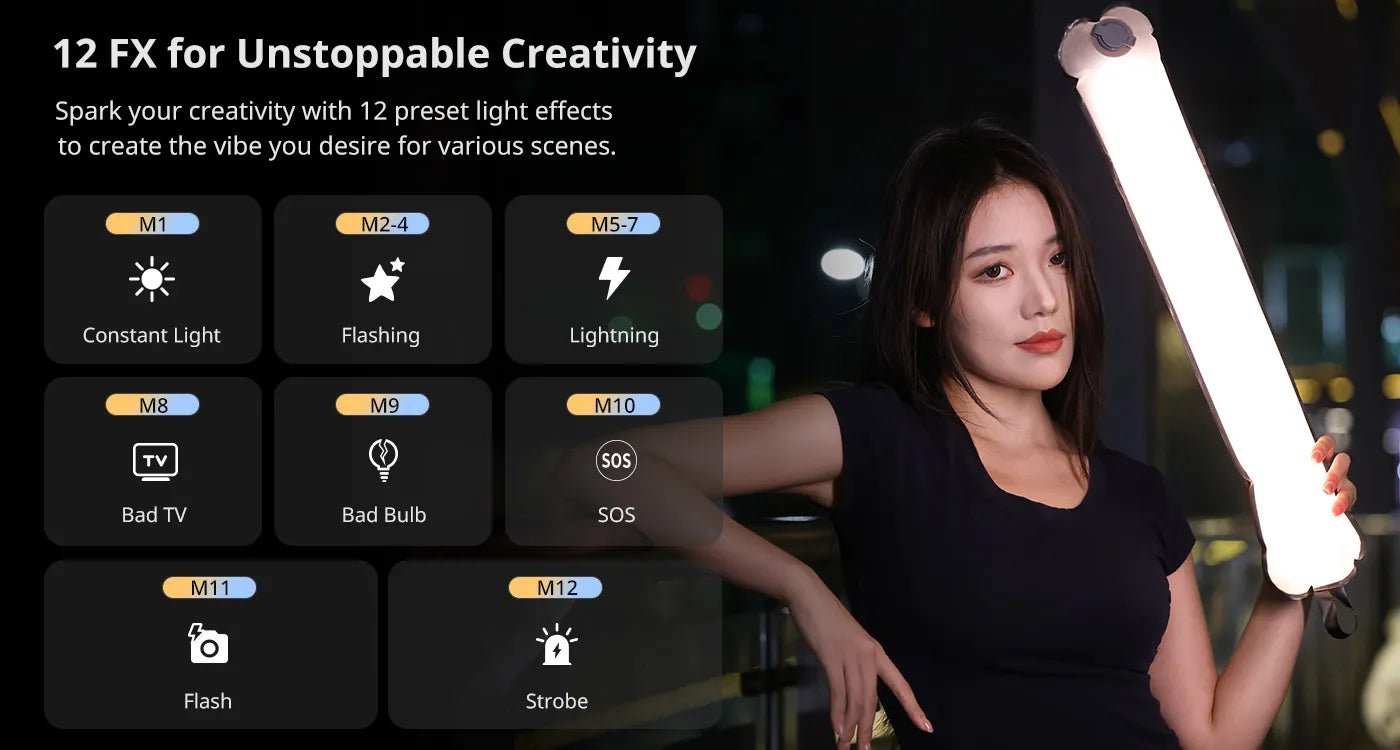 Prenosna svetilka Ulanzi UA12/UA20 Portable Air Tube Light omogoča enostavno napihovanje in praznjenje, primerno za različne scenarije. Barvno temperaturo lahko nastavite od 2700 K do 6500 K, da ustreza vašim potrebam pri fotografiranju. Izboljšajte svojo ustvarjalnost z 12 vnaprej nastavljenimi svetlobnimi učinki. Magnetni nosilec in 1/4-palčni stojalo omogočata vsestransko namestitev, vrvica pa omogoča enostavno obešanje. Napaja jo 18Wh baterija, ki omogoča hitro polnjenje v 2 urah in zagotavlja 75 minut (UA12) ali 55 minut (UA20) delovanja pri polni svetlosti. Idealna je za uporabo na poti, saj se po izpraznjenju kompaktno zloži.