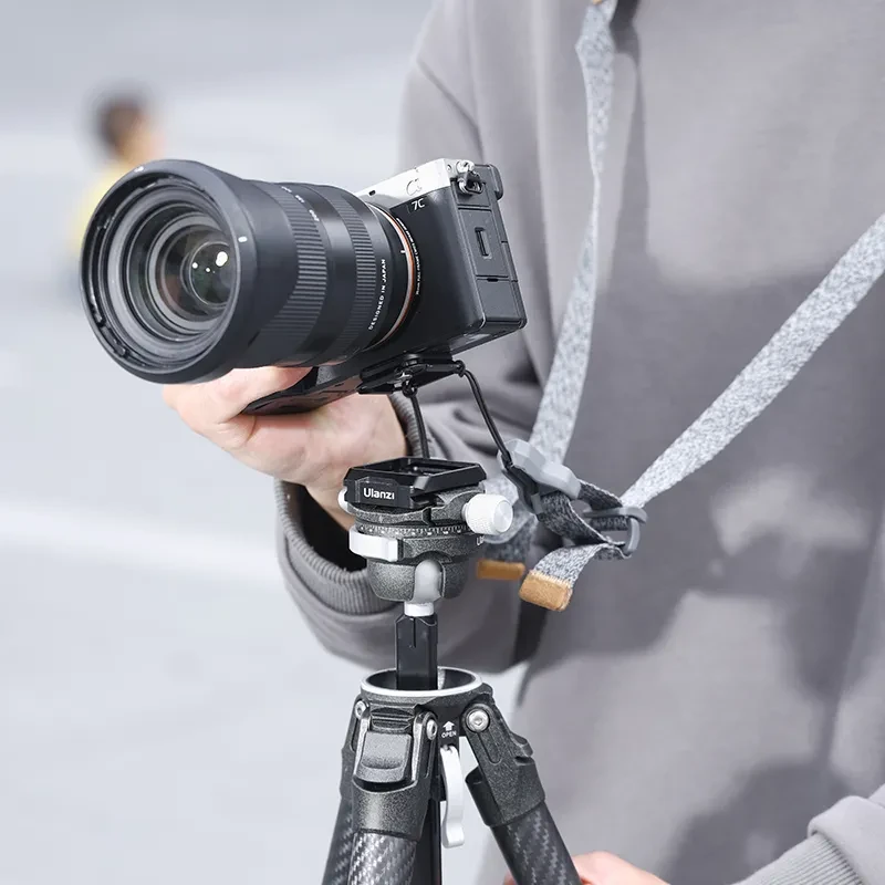 Ulanzi Uka C007 je 78 g težak komplet plošč za hitro sprostitev, izdelan s CNC-obdelavo, združljiv z 85 × 60 mm Arca-Swiss/F38/Uka dovetail, dinamično nosilnostjo 20 kg (25 kg statično), 0,8 s kotnim klik-zaklepom prek nerjavečega vzmetnega zapaha, dvojnimi varnostnimi zatiči, 1/4-obratnim gumbom, 11× 1/4"-20/4× 3/8"-16 navojev, 4× ARRI lokacijske luknje in štirimi 6 mm zančnimi zankami, ki omogočajo varno menjavo brez orodja za kardanske obeske, kletke in stative.