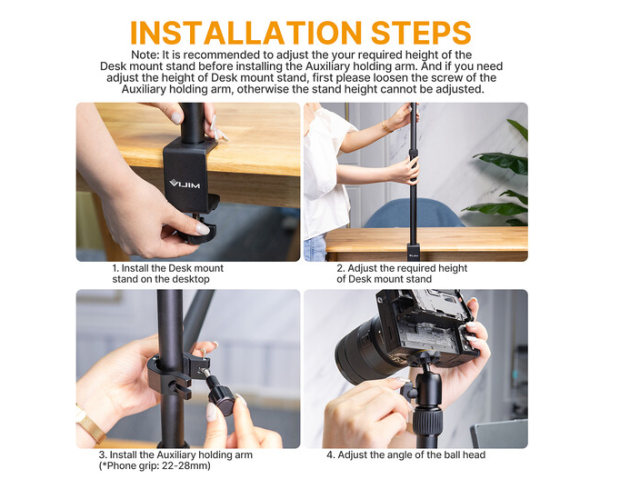 Stojalo za namestitev kamere na mizo VIJIM LS02 s pomožnim nosilnim rokom je profesionalni sistem za namestitev na mizo, zasnovan za ustvarjalce, ki v svojem delovnem prostoru potrebujejo prilagodljivost in učinkovitost. Ta sistem, ki je kot nalašč za vodiče za ličenje, videe o odpiranju izdelkov, neposredne prenose in tehnične predstavitve, vašo mizo spremeni v popolnoma funkcionalno postajo za ustvarjanje vsebin.