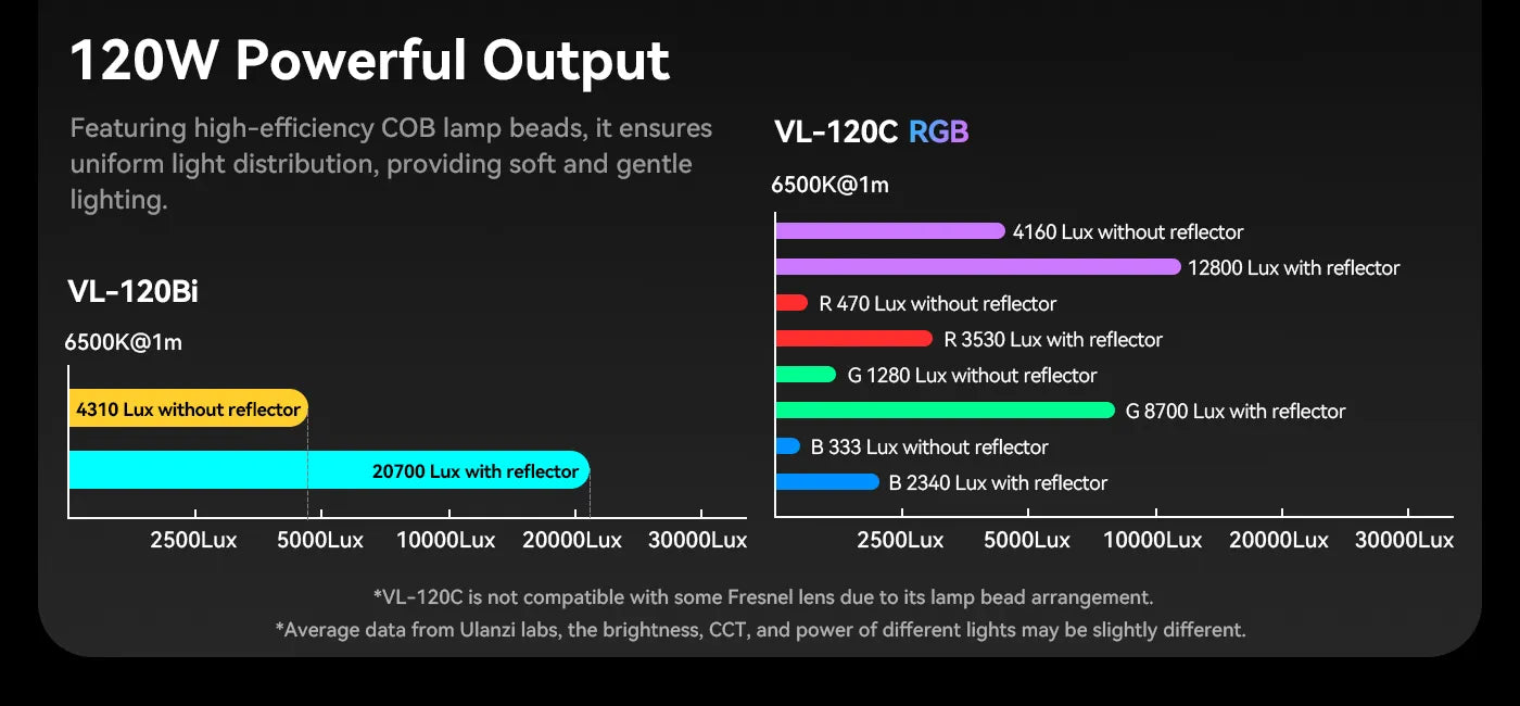 Izboljšajte osvetlitev svojih videoposnetkov z dvobarvno/RGB V-Mount video lučjo Ulanzi 120W. Ta vsestranska luč je idealna za snemanje porok, kratkih videoposnetkov, livestreaming e-trgovine in fotografiranje izdelkov, saj zagotavlja enakomerno, mehko osvetlitev z visoko učinkovitimi COB-žarnicami. S pomočjo aplikacije Ulanzi Connect lahko luč upravljate na razdalji do 30 m in prilagajate nastavitve, kot so CCT, zatemnitve, FX in skupine luči. Uživajte v 20 vnaprej nastavljenih svetlobnih učinkih z RGB različico ali 6 z dvobarvno različico. Uporabniku prijazne funkcije vključujejo LCD-zaslon, brezstopenjski gumb, 360° vrtljiv L-stojalo in združljivost z Bowens-ovim nosilcem.