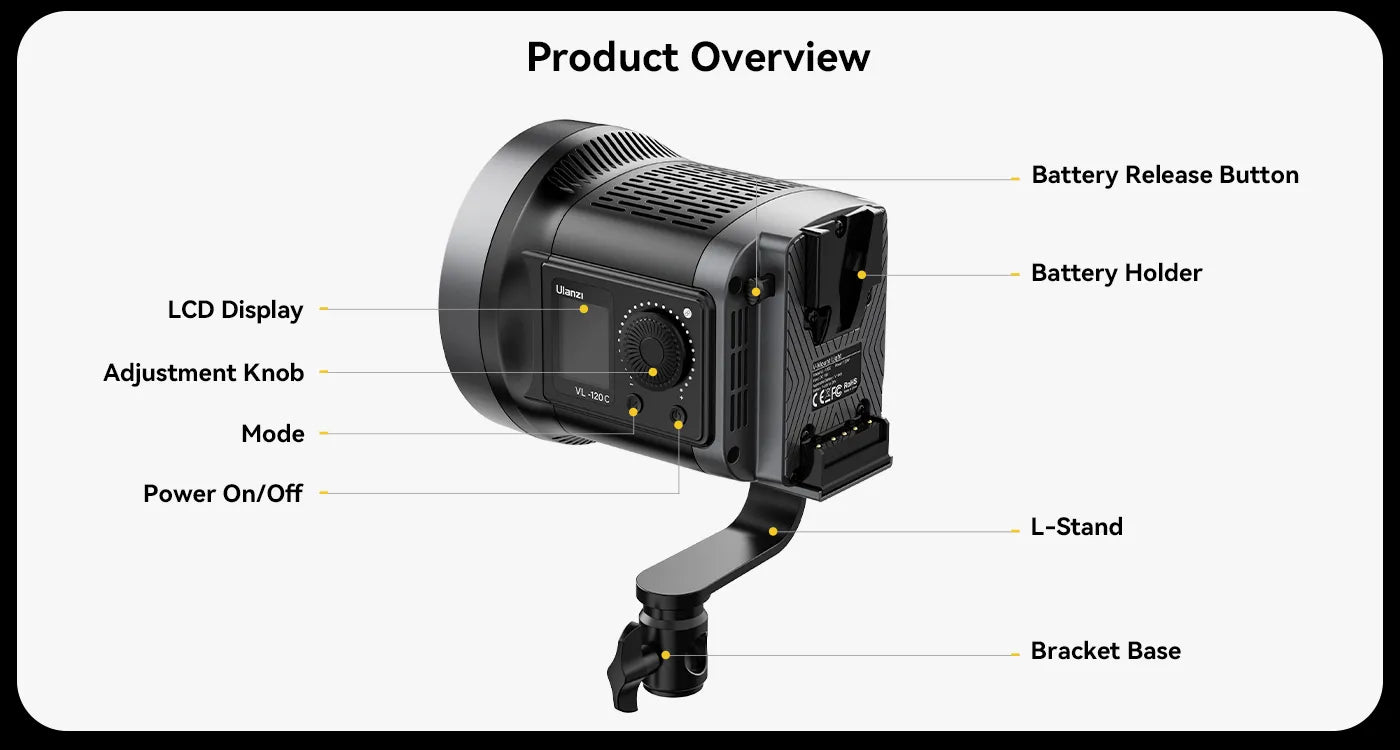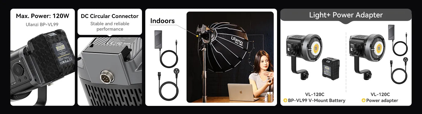 Izboljšajte osvetlitev svojih videoposnetkov z dvobarvno/RGB V-Mount video lučjo Ulanzi 120W. Ta vsestranska luč je idealna za snemanje porok, kratkih videoposnetkov, livestreaming e-trgovine in fotografiranje izdelkov, saj zagotavlja enakomerno, mehko osvetlitev z visoko učinkovitimi COB-žarnicami.