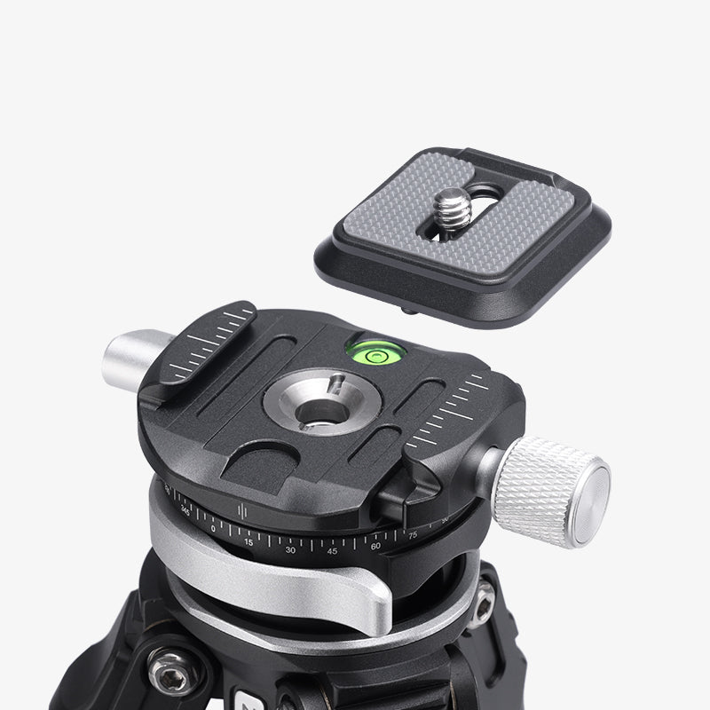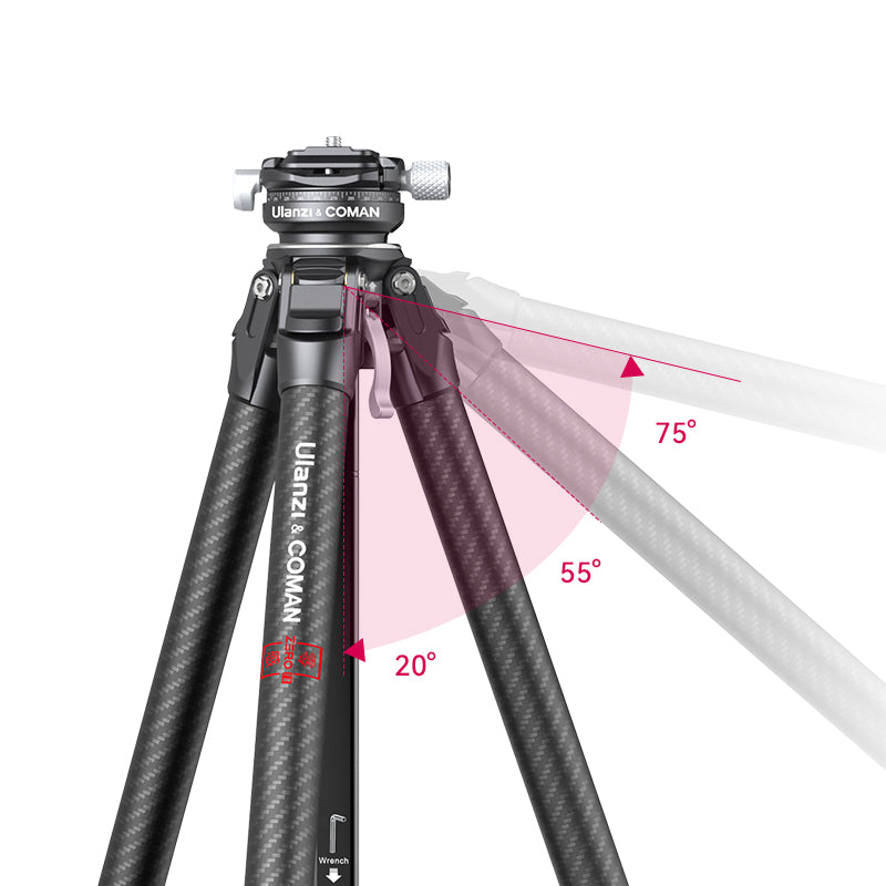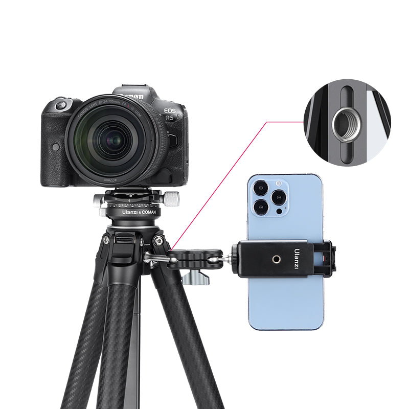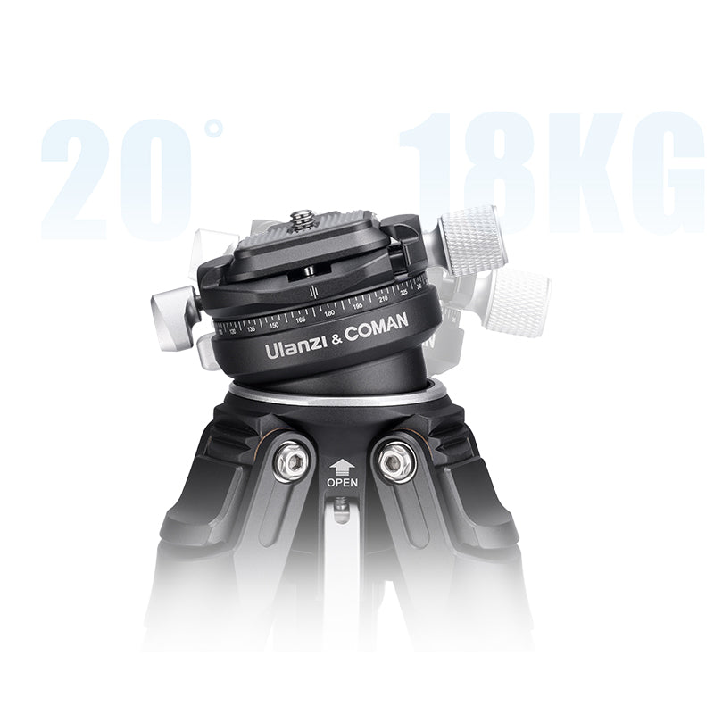- Kroglasti glava stativa ni snemljiva. Če želite zamenjati kroglasti glavo stativa, priporočamo nakup dodatkov za potovalni stativ Ulanzi F38 Quick Release – 1/4 srednji steber.
