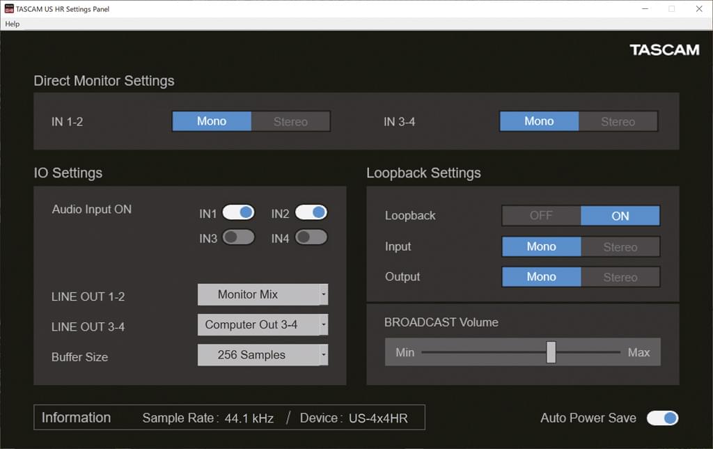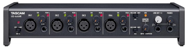 Štirikanalni vmesnik US-4x4HR je član Tascamove serije US-HR zvočnih vmesnikov USB visoke ločljivosti in izboljšana različica Tascamovega priljubljenega vmesnika US-4x4. Ponuja štiri mikrofonske/linijske vhode, od katerih lahko dva alternativno uporabite za neposredni vhod za kitaro ali bas kitaro, štiri uravnotežene linijske izhode, dva priključka za slušalke ter vhod/izhod MIDI za računalnik Windows ali Mac ali za iPhone ali iPad*. Ta vmesnik je idealen na primer za večstezno snemanje dveh instrumentov in dveh vokalistov ali za večpredstavnostno produkcijo z visokimi zahtevami po enostavni uporabi in zvoku studijske kakovosti. Zaradi vključene funkcije povratne zanke in podpore za programsko opremo Open Broadcaster Software (OBS Studio) pa je tudi odlična izbira za ustvarjanje dvokanalnih podcastov in oddaj v živo.