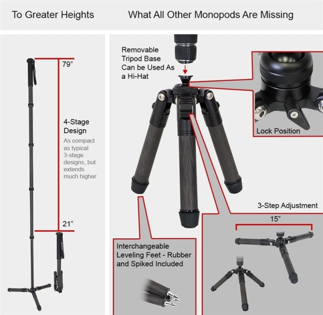 VariZoom CHICKENFOOT-AL aluminijasti monopod s podstavkom za stativ