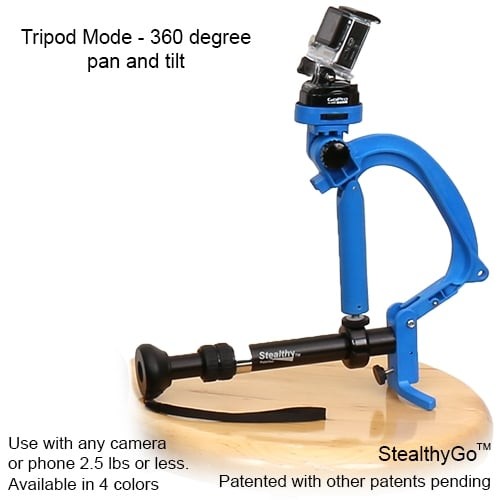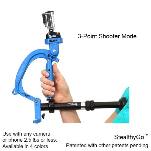 StealthyGo™ je zasnovan za kamere GoPro®, mobilne naprave in majhne kamere in se v nekaj sekundah prilagodi vašim potrebam pri snemanju. Preklopite iz ročnega načina na monopod, stativ, namizni ali 3-točkovni snemalni sistem za stabilne posnetke v tesnih prostorih ali daljše ročne snemanje. Vgrajen pasni klip omogoča hiter dostop v »način za bok«, tako da nikoli ne zamudite posnetka.