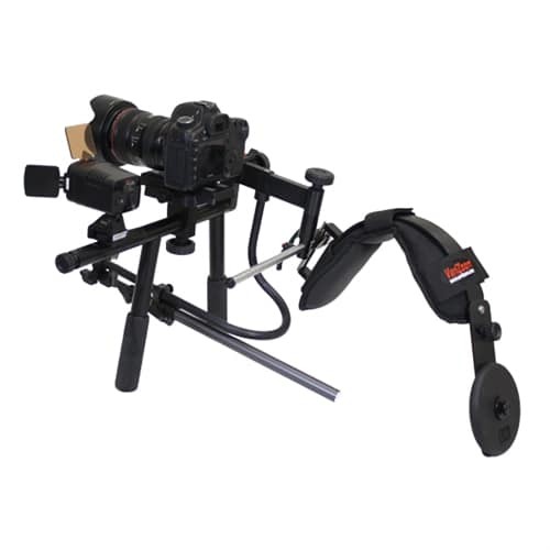 ZG Rig DSLR je posebej prilagojen za uporabo DSLR-ja za snemanje videa in ponuja obsežne možnosti nastavitve, da se prilagodi praktično vsakemu tipu telesa ali slogu snemanja. Lahko se konfigurira za delovanje na desni ali levi rami, visoke ali nizke kote kamere ter bližnje ali daljne položaje namestitve. Izjemno dolg nosilec za dodatno opremo omogoča namestitev monitorjev, luči, mikrofonov ali druge dodatne opreme, kar ga naredi idealno rešitev za profesionalne DSLR-filmarje, ki iščejo mobilnost, udobje in natančen nadzor po izjemni ceni.