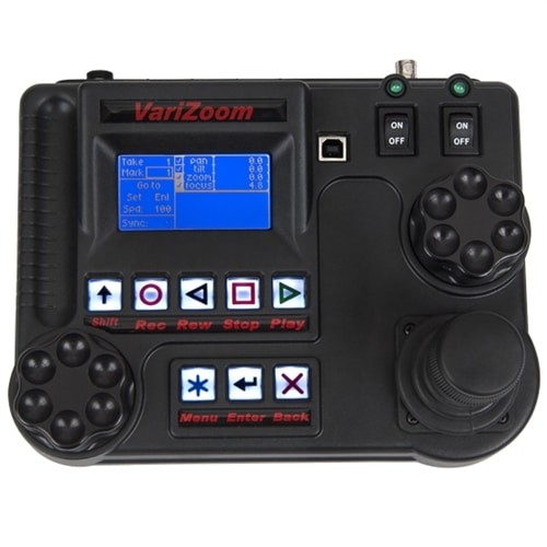 Priložena napredna krmilna konzola ponuja 3-osni joystick za premikanje, nagibanje in zumiranje, ločen gumb za ostrenje, osvetljeno tipkovnico in prilagodljive parametrične nastavitve za največji nadzor. Operaterji lahko snemajo in predvajajo 1 uro gibanja z do 2000 označenimi položaji, prilagajajo gladkost in hitrost za vsako os ter programirajo omejitve gibanja in servo nastavitve za izjemno natančnost. Sistem podpira nadzor objektivov Fuji, Canon in Preston, kompenzacijo zuma za teleobjektive, sinhronizacijo kamere za snemanje z natančnostjo na posamezni kader in napreden intervalometer za podaljševanje gibov v času.