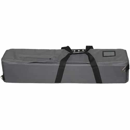 Srednji razširjevalnik poveča trdnost na neravnem terenu, medtem ko varni gumbi za nastavitev višine omogočajo hitro in zanesljivo nastavitev. Mehke gumijaste nogice omogočajo varno uporabo na notranjih in zunanjih površinah. Za prevoz in zaščito je priložena oblazinjena torba za prenašanje.