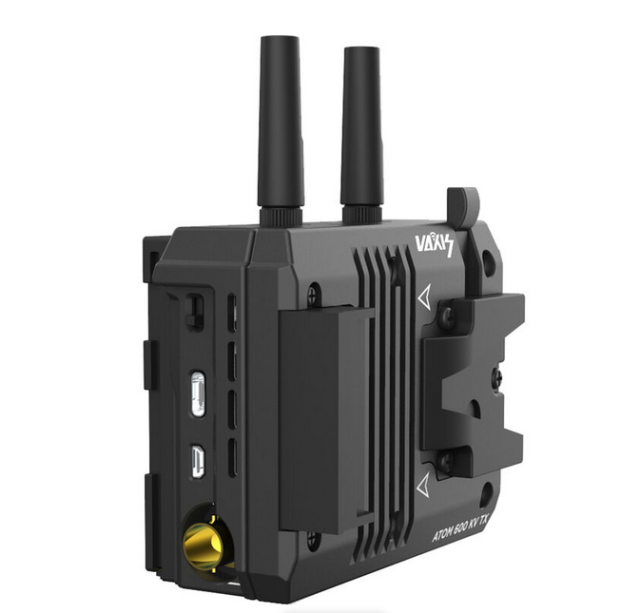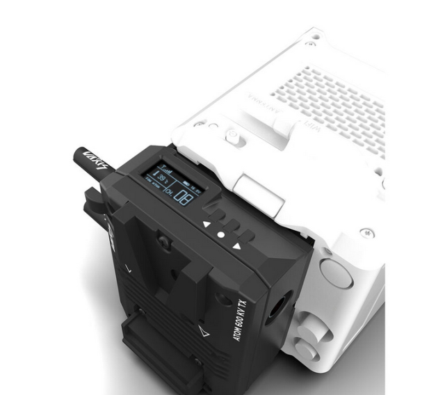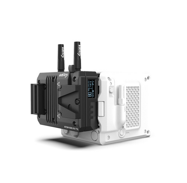 Brezžični oddajnik Vaxis ATOM 600 KV se namesti neposredno na RED KOMODO in prenaša video 1080p60 do 600' vidne linije z zakasnitvijo <80 ms prek SDI/HDMI, napaja ga V-mount s prehodom na kamero in Wi-Fi multicast na naprave iOS.