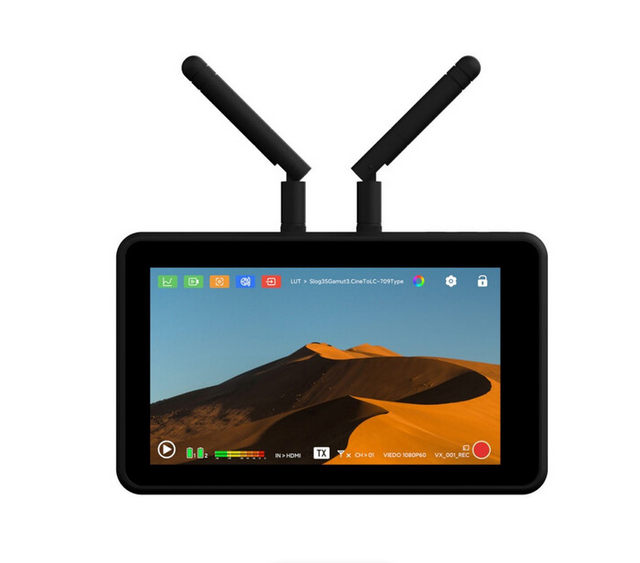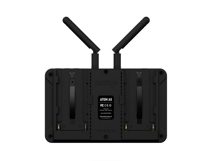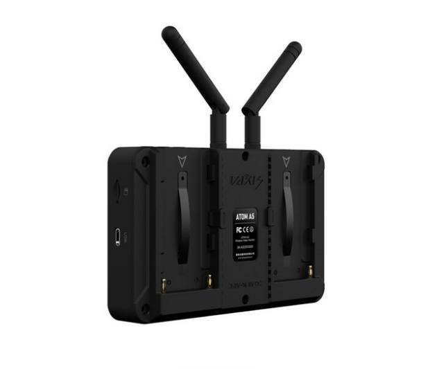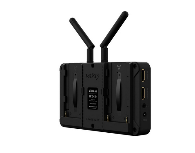 Brezžični monitor Vaxis Atom A5 5,5" RX/TX HDMI prenaša, sprejema in snema video 1080p60 do 492' z zakasnitvijo <80 ms, opremljen je z zaslonom na dotik 1000 nitov 1920x1080, dvojnim napajanjem serije L, HDMI zanko, snemanjem MP4 proxy, 50 3D LUT-ov, skope in popolno integracijo ekosistema ATOM.