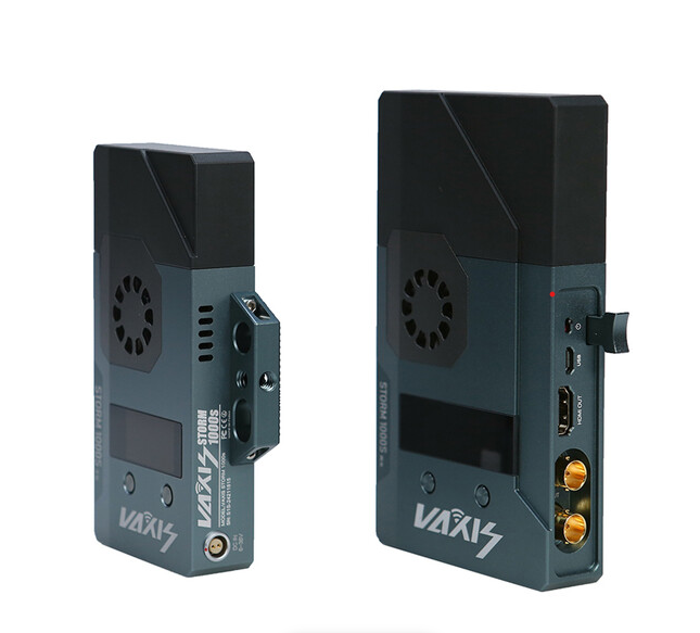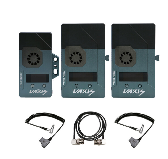 Komplet brezžičnega oddajnika Vaxis Storm 1000S + dvojni sprejemnik zagotavlja vizualno brezizgubni video 1080p z zakasnitvijo manj kot 1 ms v vidnem polju 1148', z 3G-SDI in HDMI I/O z izhodom zanke na oddajniku, dvojnim SDI/HDMI izhodom na sprejemniku, podporo za multicast, navzkrižno pretvorbo, prenos časovnega kodeka/metapodatkov in delovanje brez motenj na 20 kanalih v pasovih 5,1–5,9 GHz.