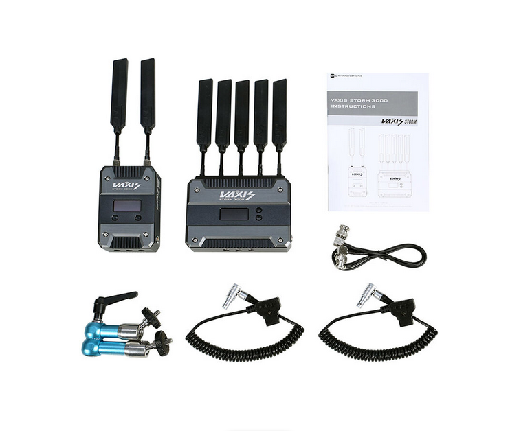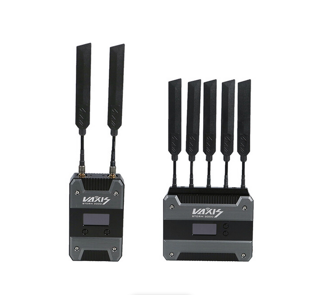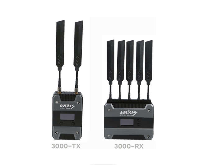 Vaxis Storm 3000 Wireless TX/RX Kit omogoča profesionalno, nekomprimirano 1080p60 video in vgrajeno avdio prenos v dosegu 1000 m z vidnim poljem, z uporabo 10 izbirnih 40/20 MHz kanalov v 5 GHz pasu, ki podpirajo multicast do neomejenega števila sprejemnikov za nadzor več kamer. Oddajnik s kovinskim ohišjem (268 g) ponuja 1x HDMI 1.3 vhod, 1x 3G-SDI vhod in 1x 3G-SDI izhod, medtem ko sprejemnik (405 g) z vgrajeno baterijsko ploščo Gold-mount ponuja 1x 3G-SDI in 1x HDMI 1.3 izhod. Obe enoti imata 128-bitno AES šifriranje, 6–36 VDC LEMO napajanje, mikro-USB vrata in delujeta pri temperaturah od 0 do 40 °C. V kombinaciji z dodatnim Storm 5G RF Channel Scannerjem lahko uporabniki takoj vizualizirajo uporabne kombinacije kamer v prenatrpanih RF okoljih.