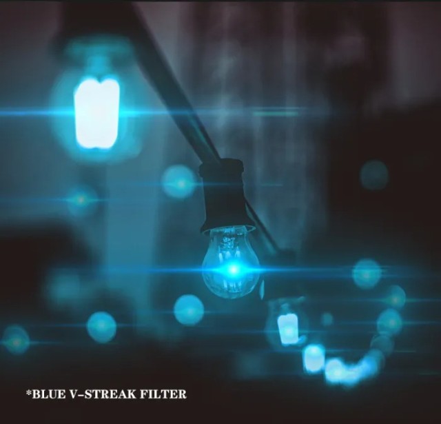 • 1.Ustvarja izrazite, podolgovate črte, ki so simetrične in vodoravno segajo od točkovnih virov svetlobe v prizoru